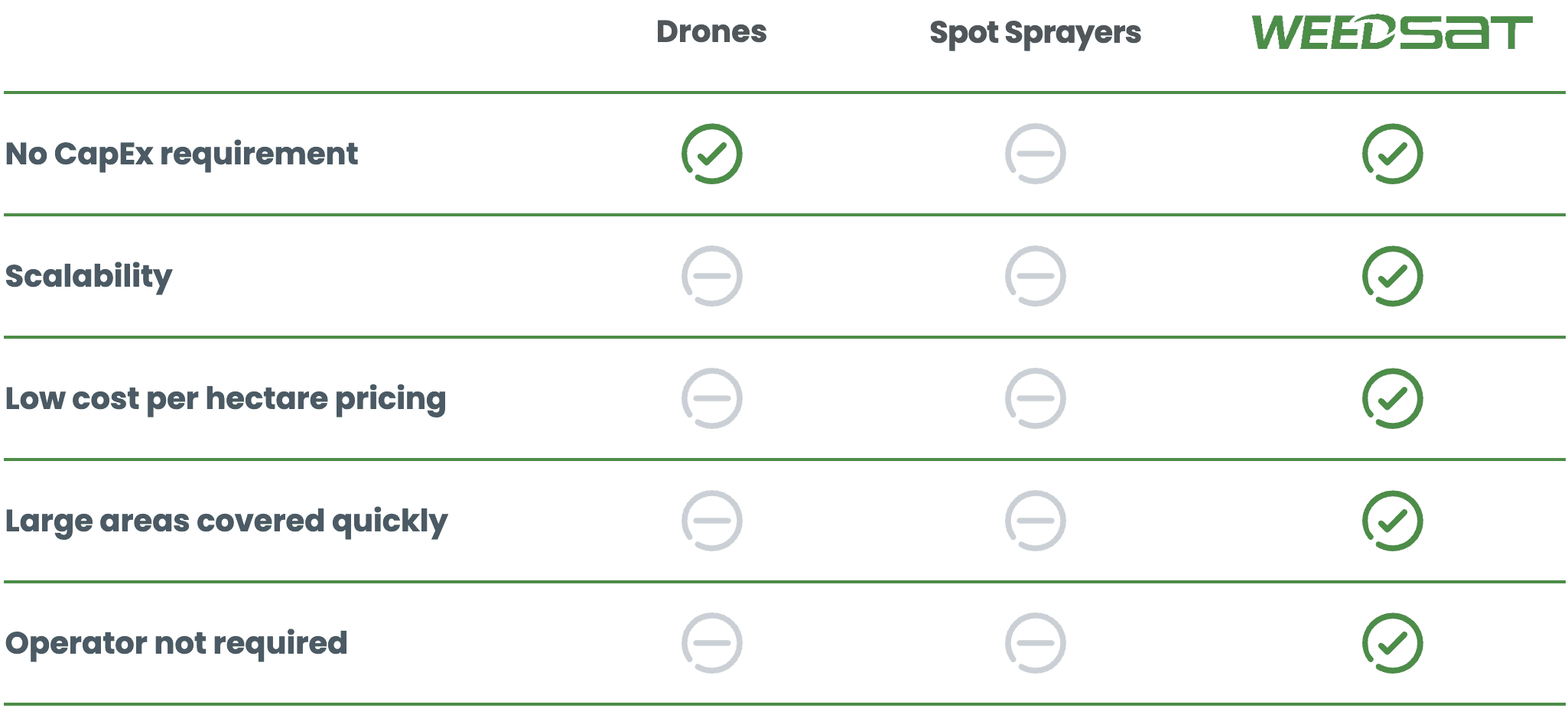 WeedSAT is one of several technologies developed with investment from the Grains Research and Development Corporation (GRDC) through the Grain Automate project. Grain Automate is an initiative on behalf of Australian grain growers aimed at accelerating the adoption of machine automation, autonomy and digital technologies in the Australian grains industry. R&D investment in this technology does not indicate commercial product endorsement by GRDC. We also acknowledge the support of the University of Sydney in algorithm development.
